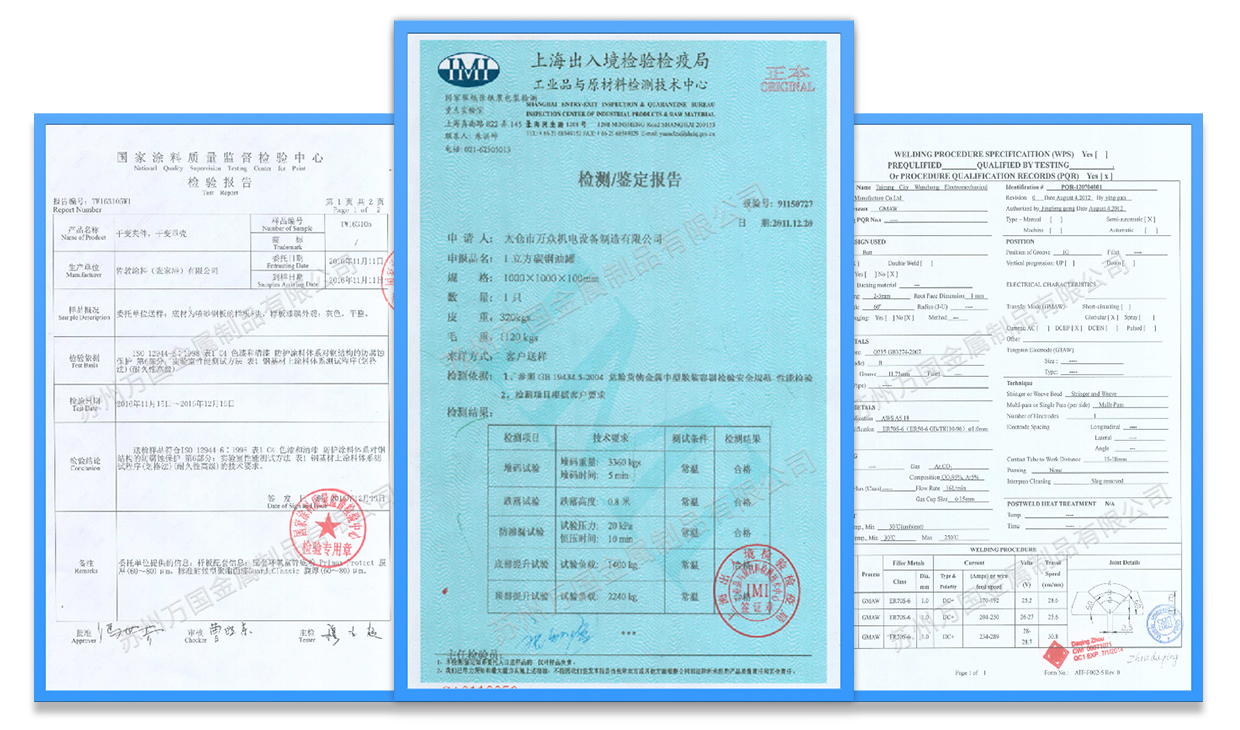 我們嚴(yán)格地運(yùn)行生產(chǎn)過程的質(zhì)量管控和成品檢驗(yàn),并擁有WPS焊接工藝評定、C4-H防腐認(rèn)證、罐體鑒定檢測報(bào)告等,確保給客戶提供高品質(zhì)、高性能的產(chǎn)品